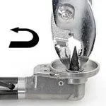 - Insert the grinding wheel removal tool around the grinding wheel fitting it between the wheel and the guard on the right angle shaft. Rotate the grinding wheel counter clockwise to loosen. Alternately a very small sized vice-grip plier can be used to grasp the top of the grinding wheel to loosen.