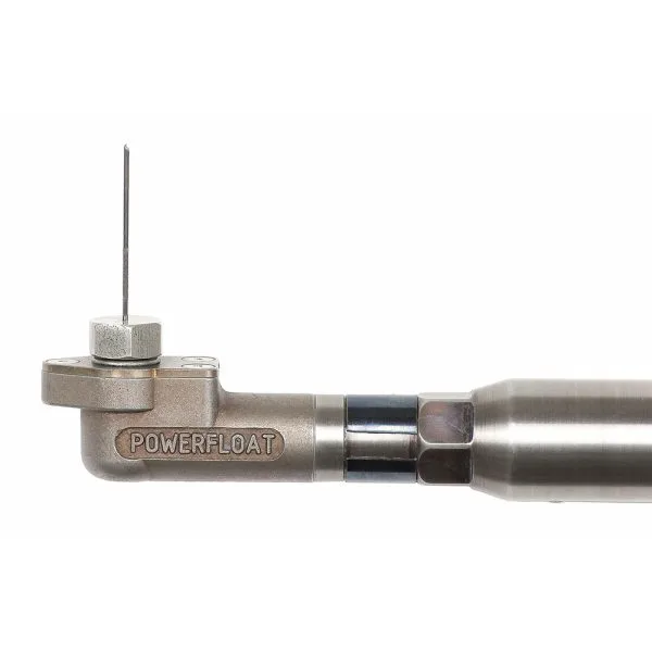 The PowerFloat rotating periotome is an unguarded right angle shaft into which a specialized collet and titanium rod set is installed. The rotating periotome is used to drill multiple holes deep into the periodontal space in order to destroy periodontal tissue during extraction procedures. This tool shortens the time required to extract equine cheek teeth.